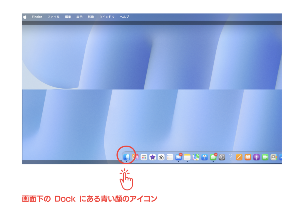 Finder は、画面下に表示されている Dock(ドック) にあります。