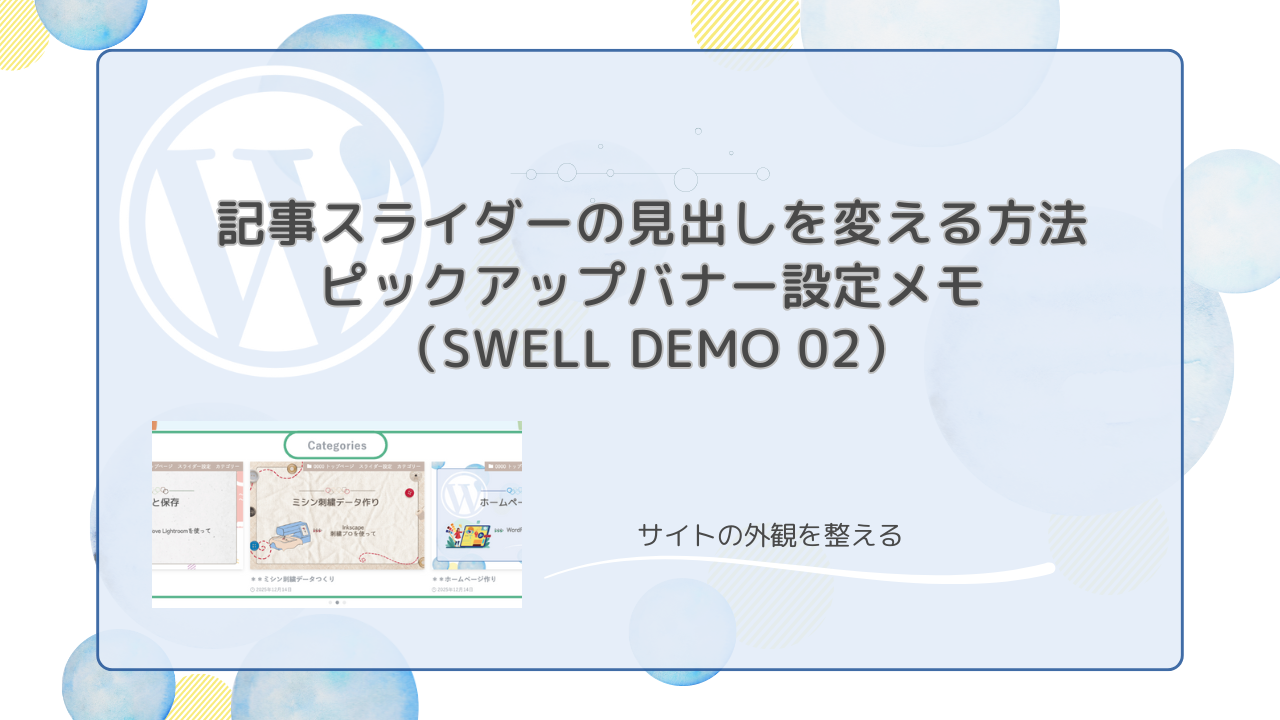 この記事は、SWELLの「記事スライダー」を整える作業メモの補足記事です。