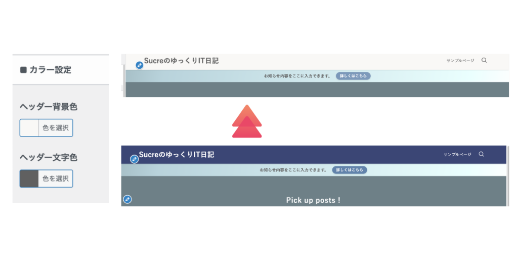 • WordPress管理画面 → 外観 → カスタマイズ → ヘッダー → ヘッダー下エリア(またはカラー設定)