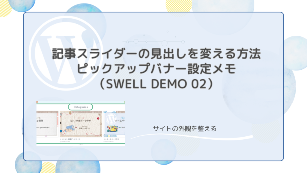 👉 【記事スライダーの見出しを変える方法|ピックアップバナー設定メモ(SWELL DEMO 02)】