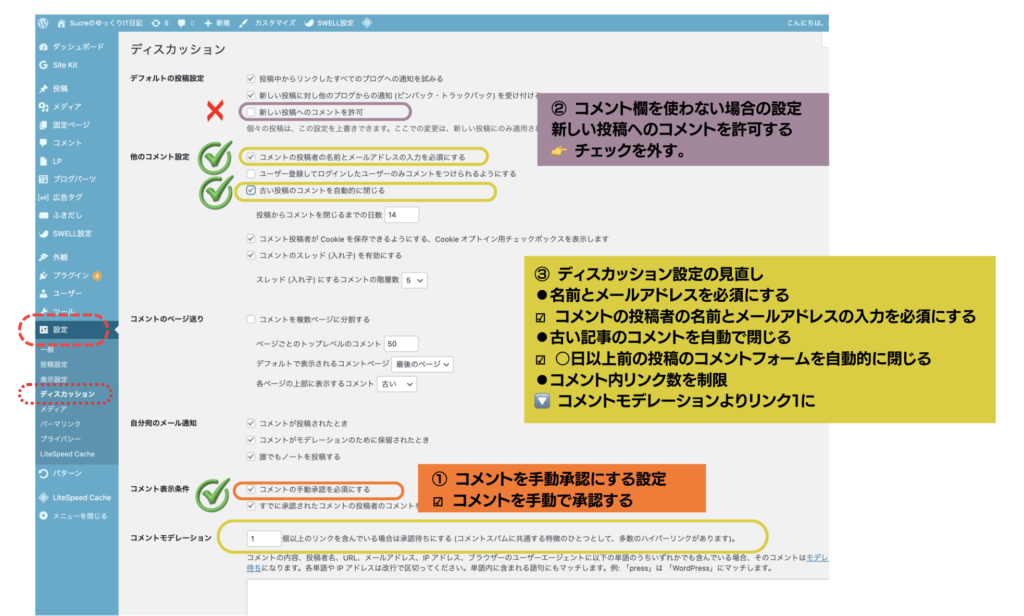 スパム対策として必要なディスカッション設定を見直すこと